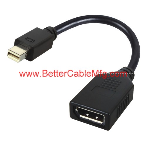 Mini Displayport (Male, Molding Type) to Displayport (Female, Molding Type) Cable, W/Latch, L=150mm, Cable Type, RoHS