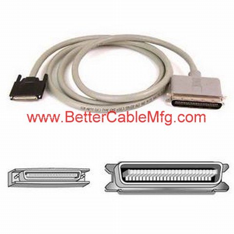 The Ultra Micro Centronics 68 (VHDCI) Male to Centronics 50 Male Pro Series (fast and wide) SCSI III Cable. Used to interface any two SCSI devices, such as a storage device, wherein one has an Ultra Micro Centronics 68 female port and the other has a Centronics 50 female port.